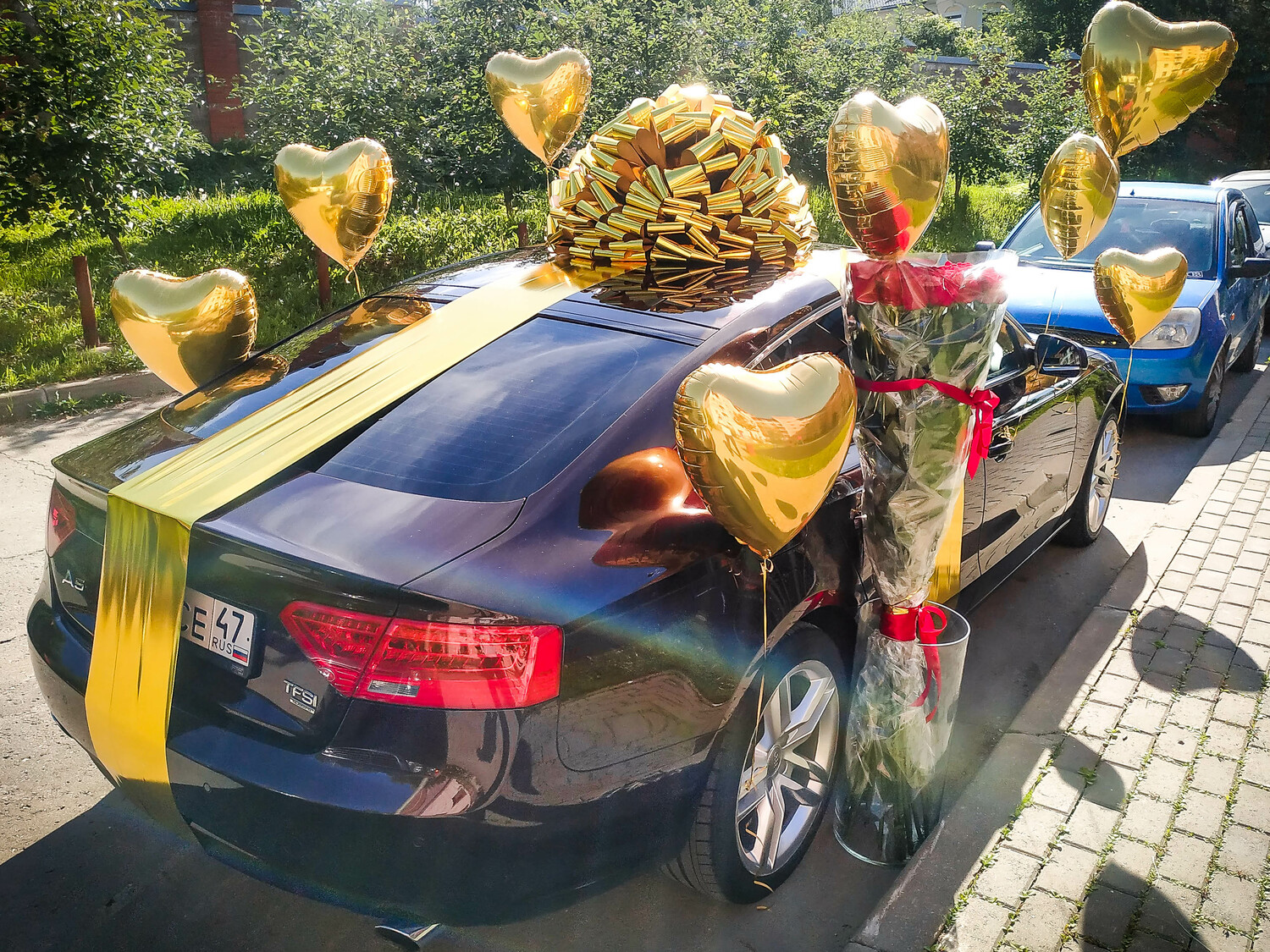 - Полный спектр украшений: от банта на крышу до декоративных лент и шаров.
